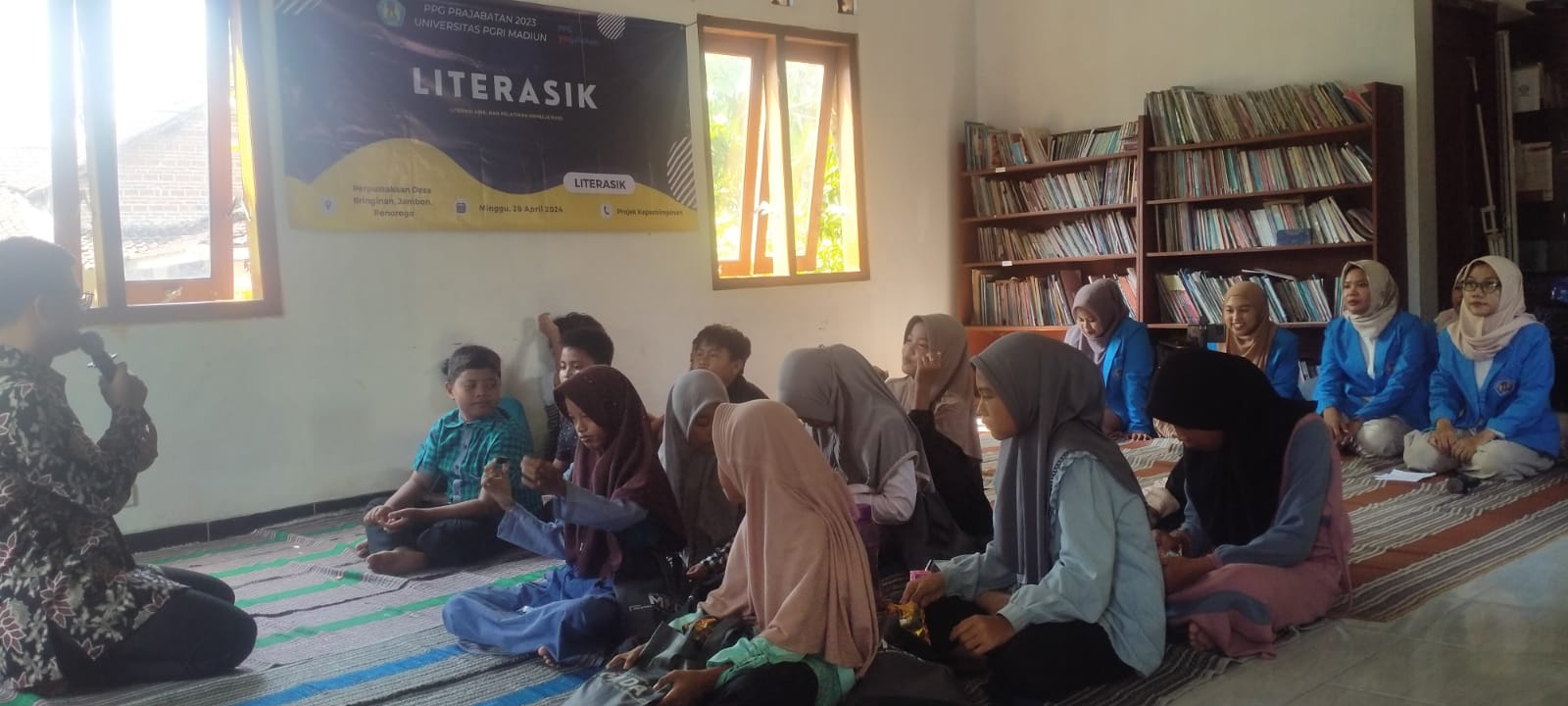 Melihat pentingnya literasi mahasiswa PPG Prajabatan UNIPMA Gelombang 1 tahun 2024, Minggu 28 April 2024 menyelenggarakan LITERASIK (Literasi Asyik dan Pelatihan Menulis Puisi) bagi siswa-siswi SDN Bringinan.