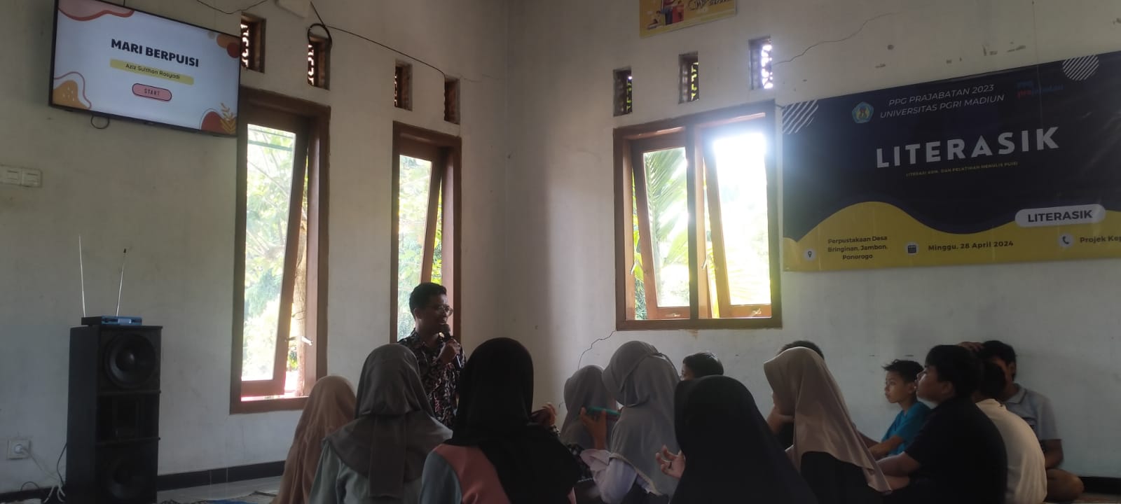 Melihat pentingnya literasi mahasiswa PPG Prajabatan UNIPMA Gelombang 1 tahun 2024, Minggu 28 April 2024 menyelenggarakan LITERASIK (Literasi Asyik dan Pelatihan Menulis Puisi) bagi siswa-siswi SDN Bringinan.